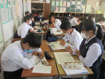 社会の授業です。 裁判所の仕組みを学習しました。