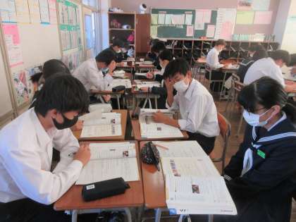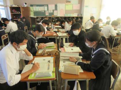 英語の授業です。 災害時の外国人支援についての英文を読み取ります。