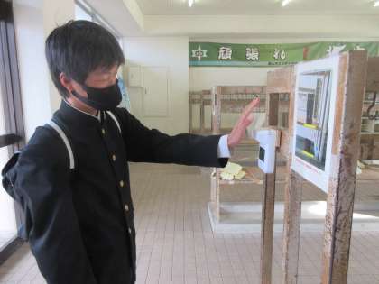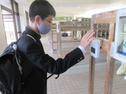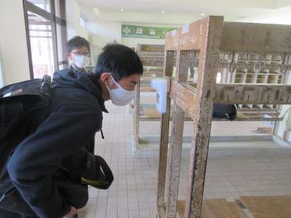 「寒い、寒い!」と言いながらも、検温は忘れません。