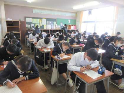 国語の授業です。 漢字テストです。緊張感が感じられます!!