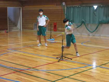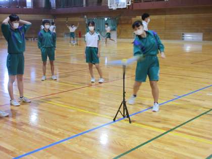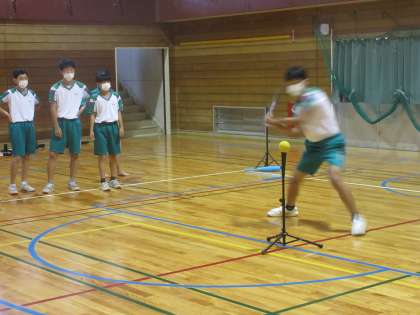 保健体育の授業です。 ソフトボールです。スポンジボールを使って攻守でポイントを競います。