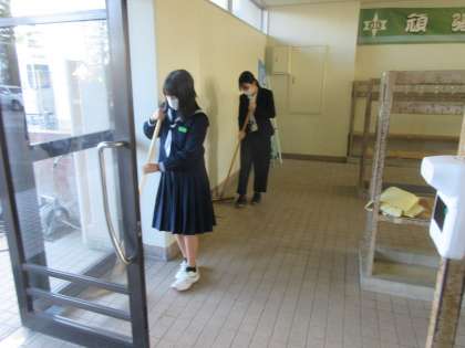 校庭や生徒玄関の清掃を行いました。 ありがとう!!