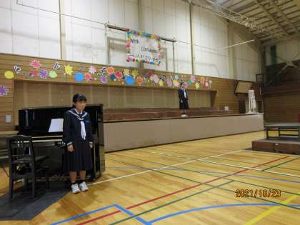 保護者の皆さんをお招きして、合唱コンクールを行いました。 まずは、1年生の部、学年合唱です。