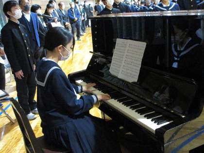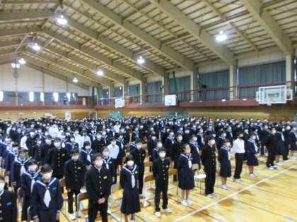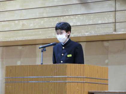 続いて、後期生徒会副会長が挨拶し、最後に全員で校歌を斉唱して会を閉じました。