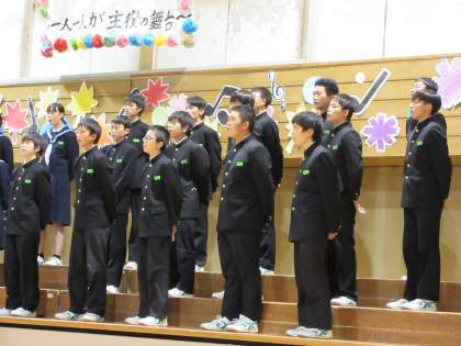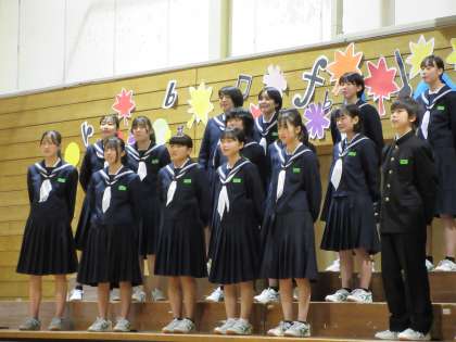 合唱コンクール(3年生)その12 公開日 2021/10/23 更新日 2021/10/23 第2学年 3−2の合唱は、男子の声が、かっこいい!!女子の声が美しい!! 合唱を豊かにしようと、様々は工夫が感じられます。