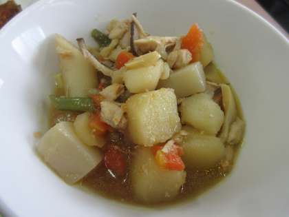 筑前だきの具材全部に味がしみこみ、絶品!! ごはん 牛乳 魚の竜田揚げ 添え野菜 筑前だき