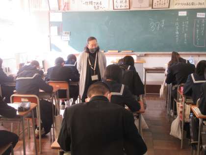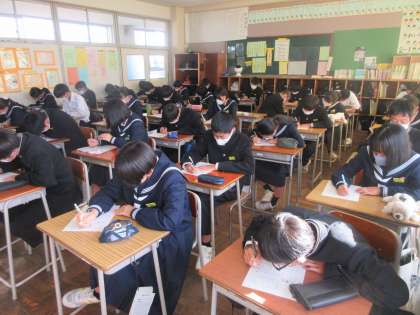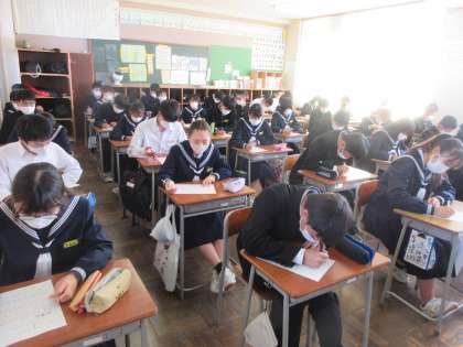 国語の授業です。 緊張感の中、漢字テストです。