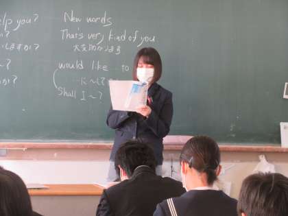 英語の授業です。 手助けを申し出たり応じたりできるように練習します。