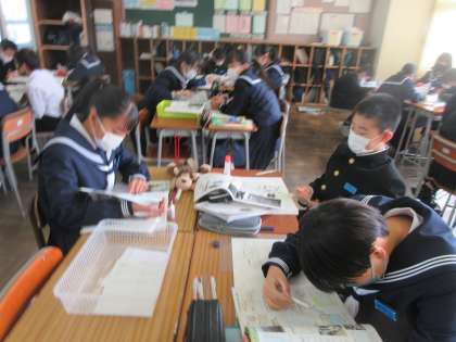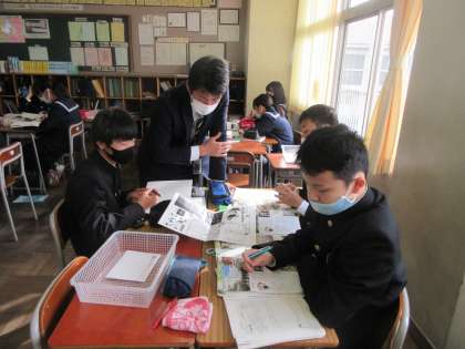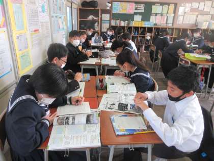 社会の授業です。 シンガポールの経済発展を学習しました。