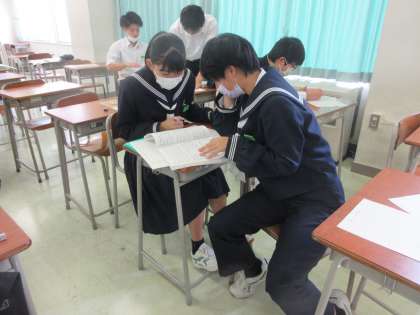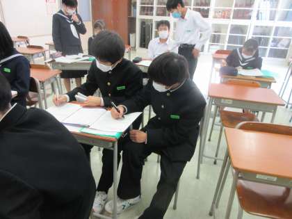 順番を待っている間、教室では、合唱コンクールの振り返りを書いています。