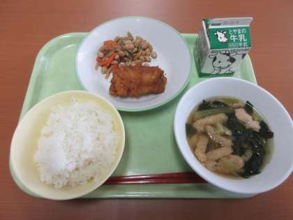 レモン味がさっぱりで、食も進みます!! ごはん 牛乳 揚げ魚のレモン味 五目煮豆 うすくず汁