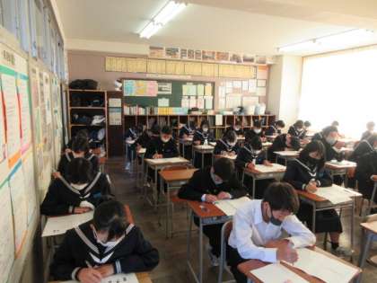 中教研学力調査の“英語”には、リスニングの問題があります。 注意深く、耳を澄ませます。
