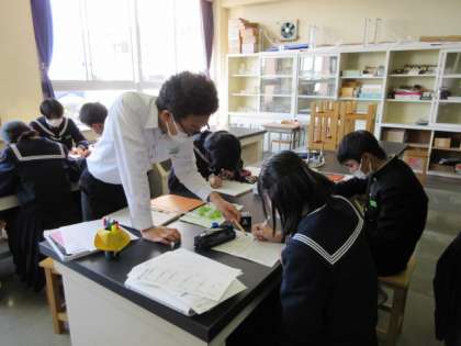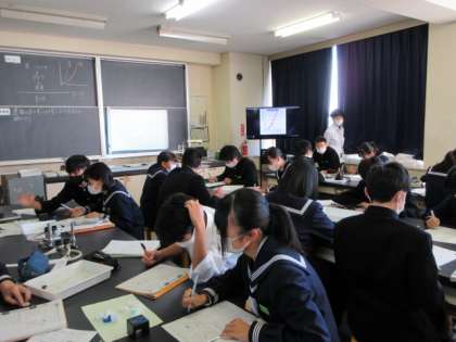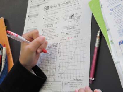 3−2 公開日 2021/11/04 更新日 2021/11/04 第3学年 理科の授業です。 運動エネルギーは何によって決まるのかを考えました。 班で協力して、データを集め、数値を確認しながらグラフをかきました。