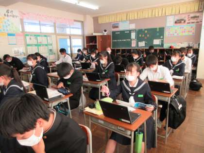 社会の授業です。 私たちの街に必要な政策について考えました。