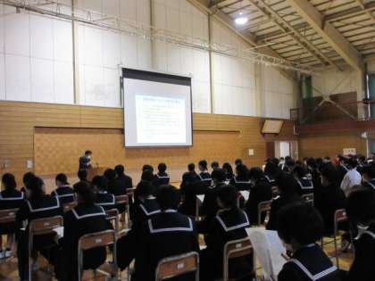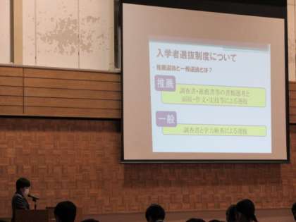 3学年の担当者が、今後の進路関係の予定や入学者選抜制度等について説明しました。