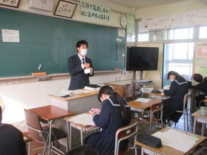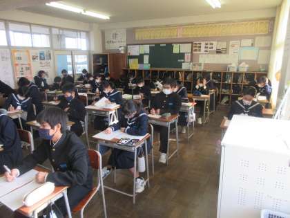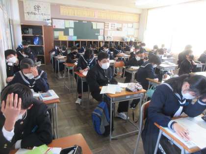 理科の授業です。 先日の中教研学力調査の解説です。