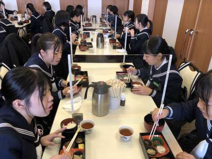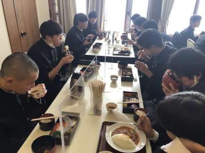 ホテル立山で昼食。 1組全員元気に完食しました。