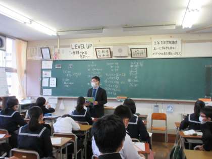 数学の授業です。 中教研学力調査の答案が返却されました。