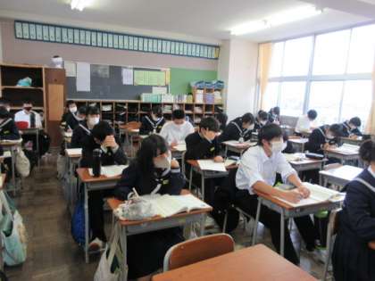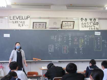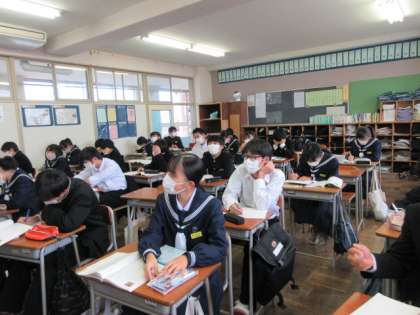 国語の授業です。 徒然草の序段と第五十二段「仁和寺にある法師」の学習をしました。