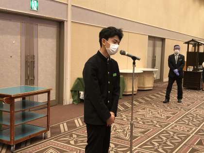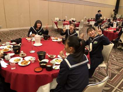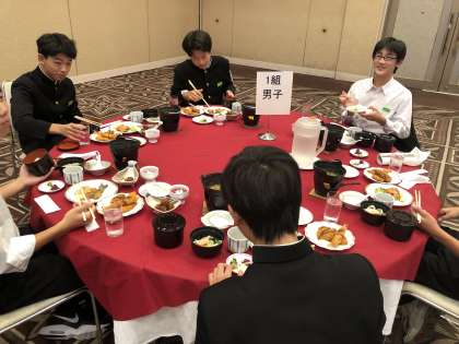 みんなお腹が空いていたのか、集合時間の20分前には食事会場に集まっていました。1組生活係の号令で食べ始めました。みんなよい笑顔で食べています!