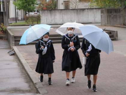 風がだんだん冷たくなってきましたが、生徒は元気に登校しています!