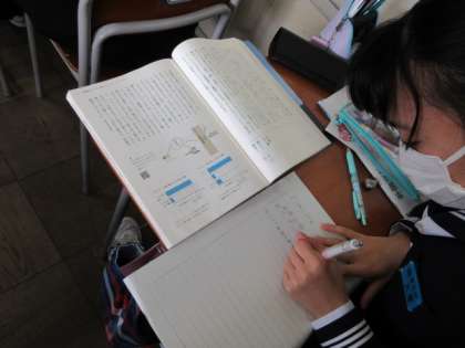 国語の授業です。 説明文「言葉」をもつ鳥,シジュウカラの読み取りを行いました。
