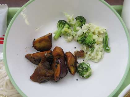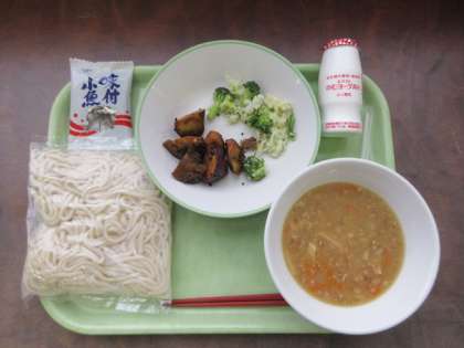 今日の給食 公開日 2021/11/10 更新日 2021/11/10 給食 ソフト麺に大学いも! これだけでもうれしいのに、今日は飲むヨーグルト!! ソフト麺 飲むヨーグルト ソフト麺のにくみそかけ 大学いも 花野菜サラダ 味付け小魚