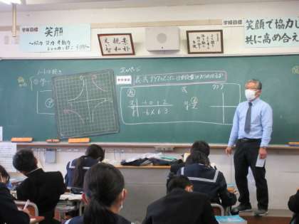 数学の授業です。 反比例の比例定数について学習しました。