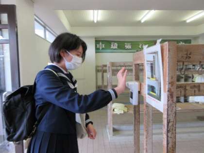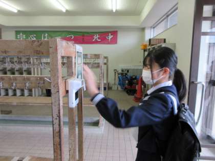 玄関での検温は、毎朝の習慣です。