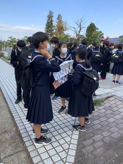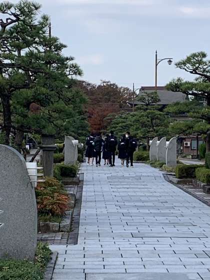 瑞龍寺駐車場に着きました。 班別学習スタートです。
