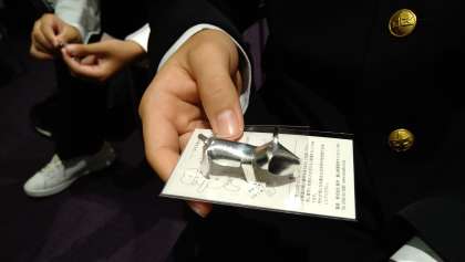 能作では錫の板を使って、折り紙をしました。