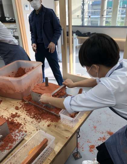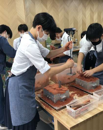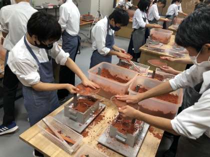 錫を流し込む筒を付けて、型が完成です。