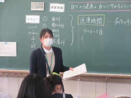 保健体育の授業です。 保健・医療機関・医薬品の利用を学習しました。