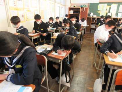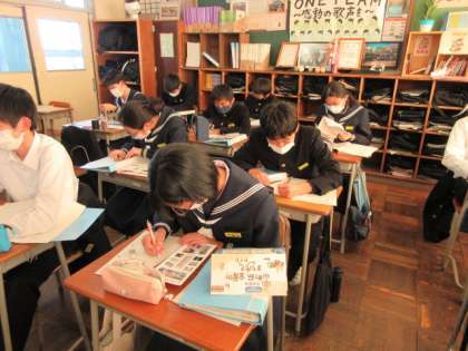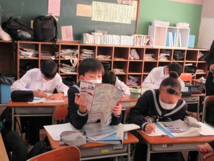 資料を見ながら、学習課題の追究を新聞にまとめていました。