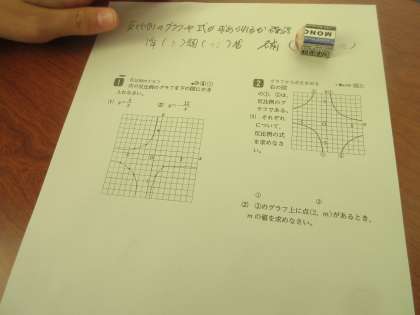 数学の授業です。 反比例のグラフを学習しました。