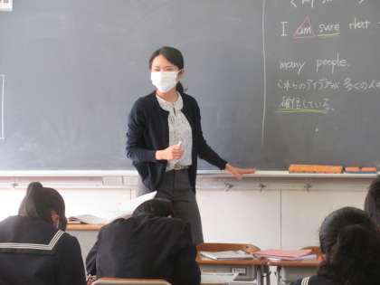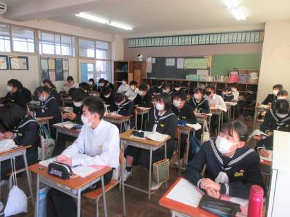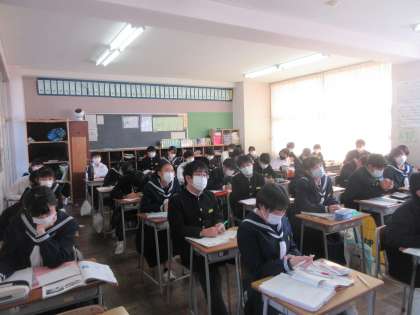 英語の授業です。 聞き取りテストの解説を行いました。