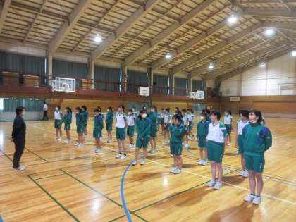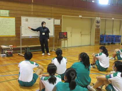 教育実習生が、3−2、3組で保健体育の研究授業を行いました。 バスケットボールです。