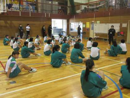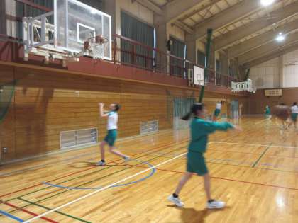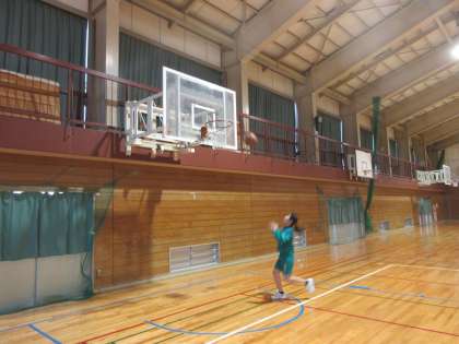 まずはシュート練習です。 各グループ、時間内に何本決められるかな!?
