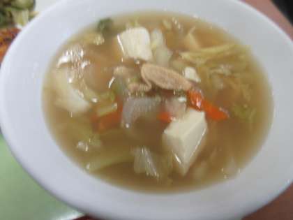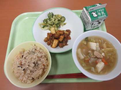 今日の給食 公開日 2021/11/22 更新日 2021/11/22 給食 豆腐スープは野菜に、豚肉、そして豆腐と、これ一杯で栄養満点!! ひじきごはん 牛乳 いかと豆のカレー揚げ グリーンサラダ 豆腐スープ