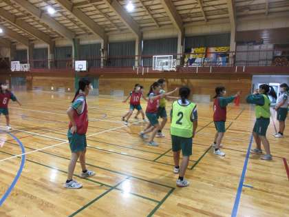 試合のないチームは、他チームの観察です。 「あっ、あの作戦、今、上手くいったよね!!」