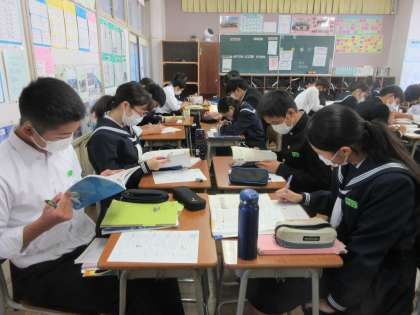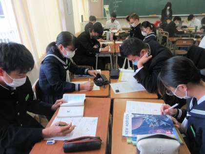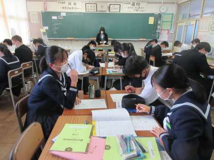 英語の授業です。 Unit4の復習です。テスト前ですし、真剣です!!