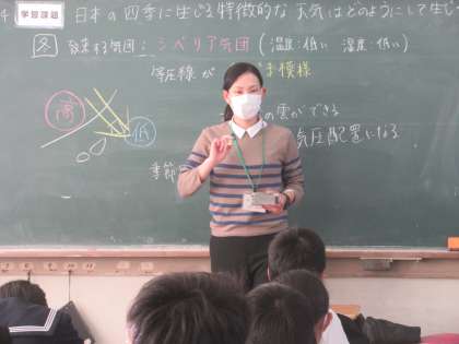 理科の授業です。 日本の四季に生じる特徴的な天気を学習しました。