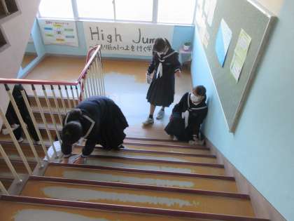 校内の階段を隅々まできれいにしました。 参加者の皆さん、ありがとう!!