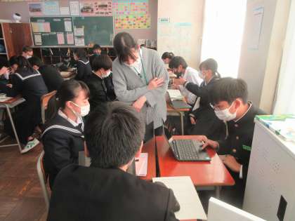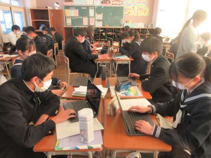 国語の授業です。 和歌の発表資料がだいぶ出来上がりました。