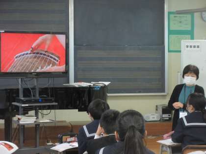 音楽の授業です。 箏曲「六段の調」を鑑賞しました。