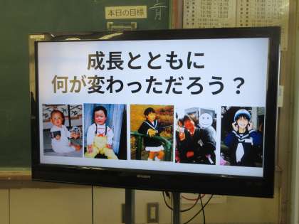 保健体育の授業です。 体はどのように発育・発達するのかを学習しました。 「さあ、これは誰でしょうか!?」