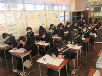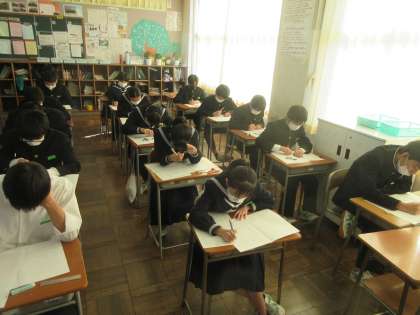 3年生が、1、2限に富山市中3学力調査を行いました。 今日は、英語・数学の調査です。