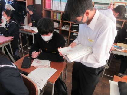 テストを待っている間に、友達同士で練習です。