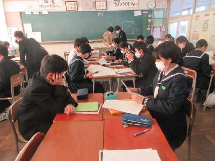 理科の授業です。 昨日の学力調査の解説です。