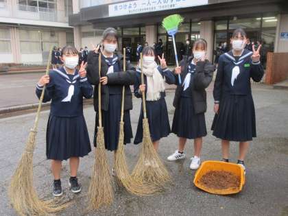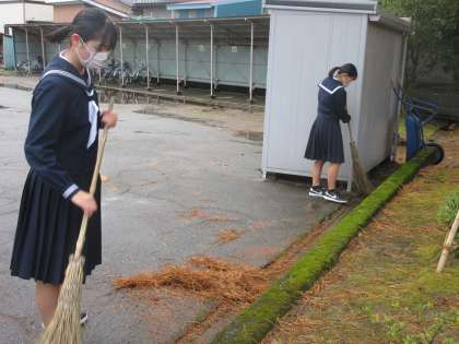 3年生女子が、「落ち葉掃き隊」を結成しました。 朝早くから、ありがとう!!
